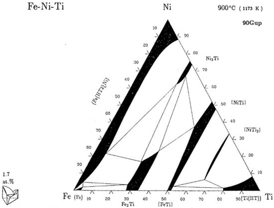 Isothermal section of Fe-Ni-Ti ternary phase diagram at 900 °C [,].