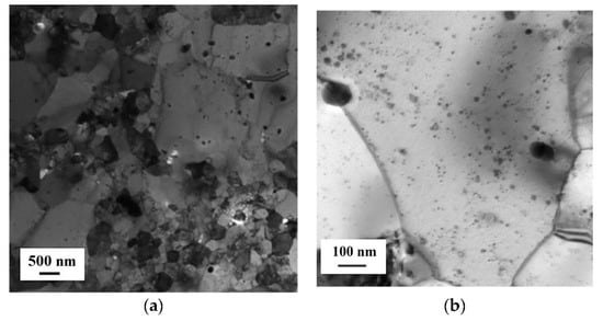 - The Orowan critical stress (σK) is determined through the relationship of Kocks []:ν = 0.3 is the Poisson’s ratio, L = 63 nm and d = 18 nm are the mean spacing between particles and particle size, respectively, determined from TEM observations (average values of 20 micrographs).