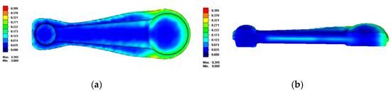 Simulations were also performed in the connecting rods made of AA-5083-N0-T380, AA-5083-N2-T200 and AA-5754-N0-T380 where the loss of volume was measured at 1.5 × 105 cycles, as shown in Table 4. Moreover, Table 4 shows the experimental loss of volume after 1.5 × 105 cycles, as well as the differences between both experimental and FEM results.