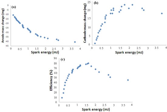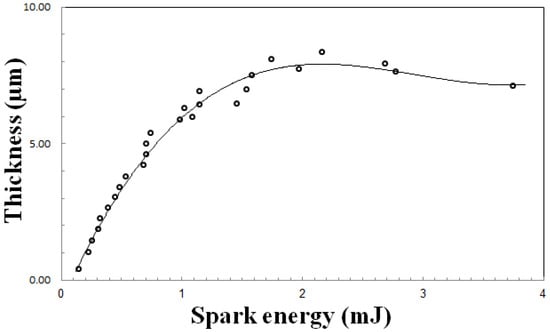 - As spark energy increases, efficiency of coating increases to 80% and then decreases. If deposition efficiency is more than 50% the process will be high in efficiency, thus, in the energy range of 0.5–3.5 mJ the process will have the appropriate efficiency.