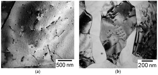 Microstructure of the 5024 alloy deformed till failure at 10−3 s−1: (a) coarse-grained state; (b) after ECAP. The TEM foils were cut approximately 10 mm far from fracture.