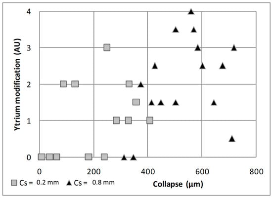 Yttrium modification (arbitrary unit defined in Table 3) as a function of collapse value.