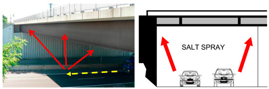 - Iwasaki, E. Scattering of Deicing Salt and Corrosion of Steel Bridges. In Proceedings of the Challenges in Design and Construction of an Innovative and Sustainable Built Environment, 19th IABSE Congress, Stockholm, Sweden, 21–23 September 2016; pp. 1436–1441. [Google Scholar]