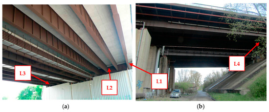 - L1—bridge No. 1—external girder, north orientation (corresponds to surfaces P1 and P5);