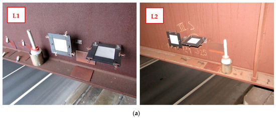 (a) Individual positions of the measuring devices on the selected bridges; (b) Individual positions of the measuring devices on the selected bridges.