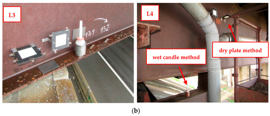 The chloride deposition rates are measured using the wet candle and the dry plate methods in compliance with the EN ISO 9225 standard [19]. The standard sets the relationship between chloride deposition rates measured by wet candle Sd,c and on the dry plate Sd,p (the dry plate is assumed to be in a vertical position):