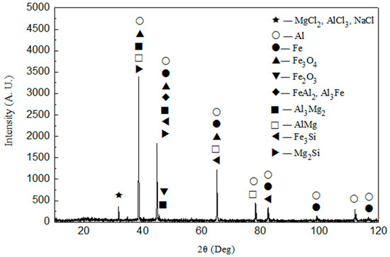 XRD (X-ray Diffraction) spectrum of the transverse section of keyhole-free FSSW joints of dissimilar 6082 aluminum alloy and DP600 galvanized steel.
