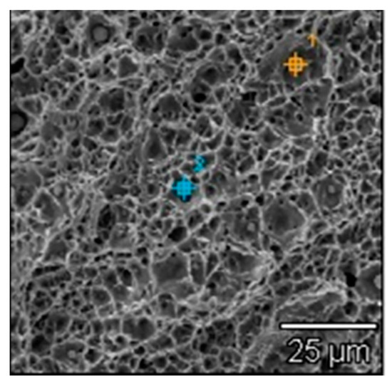 A small percentage of small inclusions (in the range of 0.3–0.6 µm) that are beneficial for acicular ferrite formation in welding conditions was also observed in the analysis [5,6,29] (Table 6).