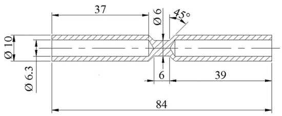 The Ac1 and Ms critical temperatures were determined by dilatometric analysis using a Gleeble 3800 thermo-mechanical simulator (Dynamic Systems Inc., Poestenkill, NY, USA), equipped with a ISO-Q Quenching and Deformation Dilatometer. The samples were heated at 1020 °C, with a heating rate of 300 °C/h, held for 1 h at the target temperature, and then cooled to room temperature using different cooling rates of 100 and 3000 °C/h. Volume variations of samples were measured by a laser dilatometry system []. Figure 1 shows the geometry and dimensions of the samples used. Details of the experimental technique are reported elsewhere [].