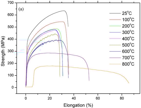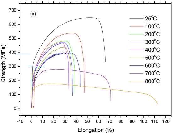Mechanical properties of as-received blanks tested at temperatures of 200–800 °C.
