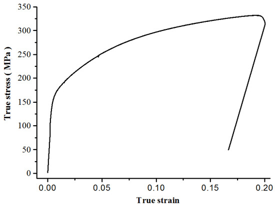 In order to determine the contact response in the rolling process, a FEA simulation is used in this paper. A typical rolling process is shown in Figure 3a. The process variables are summarized in Table 1. The chosen process parameters are typical for a plate rolling process. The material of the blank is magnesium alloy (AZ31). The material of roller is A532M, which is a typical steel for cold-forming die with good wear resistance. The isotropic material properties of the blank and roller are summarized in Table 2, and the plastic property of blank is shown in Figure 4. The rolling process was replicated in the numerical simulation using a non-linear implicit FEA code (ABAQUS/Standard Version 6.14-1, SIMULIA, Providence, RI, USA). The classical von Mises plasticity model was used to describe the plastic deformation of the plate in the simulations. The analysis was simplified to a one-half symmetry, two-dimensional plane strain problem. In order to analyze the contact responses of the roller in detail, the roller mesh and blank mesh were significantly refined in the region of respective interfaces as shown in Figure 3b. The four-node, bilinear, plane strain, quadrilateral, reduced integration elements with enhanced hourglass control (CPE4R) were used to mesh the roller and blank. The Coulomb friction model was used between roller and blank. Convergence check was carried out to ensure that the mesh is fine enough to have converged results, as shown in Figure 5. This figure clearly indicates both the peak contact pressure and the maximum sliding distance converged to constant values with the reduction of the mesh size in the contact area. Consequently, the fine mesh size of model was 0.05 mm in the investigation. The von Mises stress in a rolling process is shown in Figure 3c.