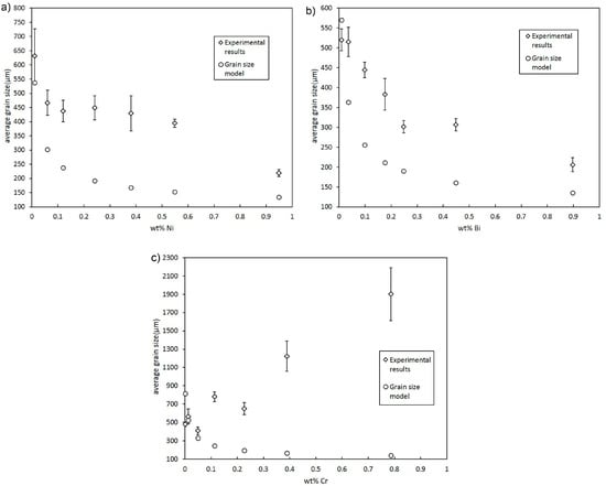 - Despite a low growth restriction potency, Ni, Bi, and Te were found to decrease grain size continuously with increasing alloy concentration. The results obtained by the melting experiments are in good agreement with the results of the grain size model.