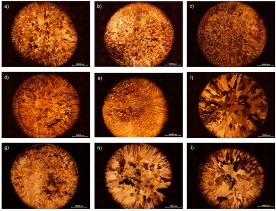 - Romankiewicz, F.; Glazowska, I.; Rybakowski, M. Kornfeinung von Kupferlegierungen. Metall 1994, 48, 865–871. (In German) [Google Scholar]