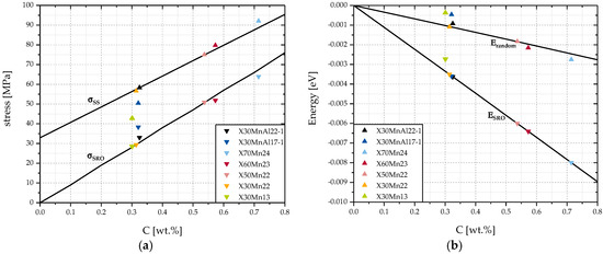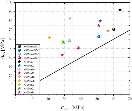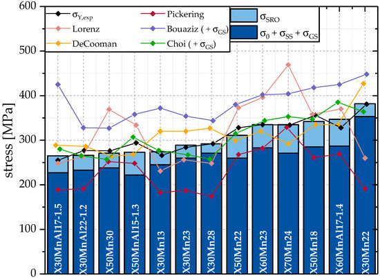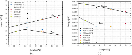 37]. Many of those models have used databases with significant amounts of different alloys to employ a linear regression in order to get parameters that determine the effect of alloying elements on the yield strength of the austenitic steel. Assuming that SRO in HMnS influences the yield strength