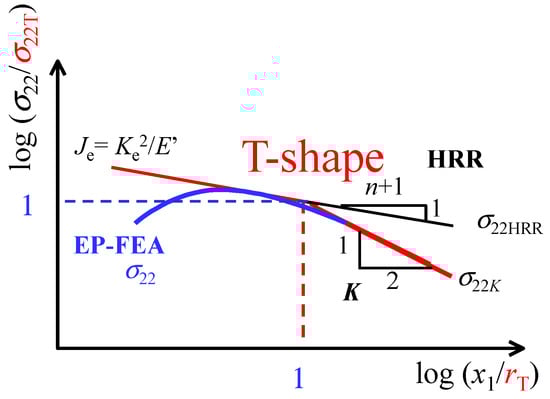 The J value for the σ22HRR calculation was elastic and given as (1 − ν2)K2/E, which was also used for defining the T-point [45].