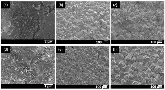 In order to study the morphology and to determine the chemical composition of the corrosion products, SEM images were taken of the surfaces and cross-sections of several samples, using a JSM-7600F FEG SEM of JEOL (JEOL, Akishima, Tokyo, Japan). Before the analysis of the cross-sections, the sample was ground and polished to 1 µm. To further characterize the features of the corrosion products in more detail, EPMA was performed, using a JXA-8530F set-up of JEOL (JEOL, Akishima, Tokyo, Japan). Additionally, the samples were analysed with XRD (Bruker, Karlsruhe, Germany) using a Siemens D5000 diffractometer with Mo Kα radiation to identify the formed corrosion products.