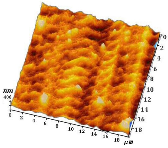 The surface feature of TC4 is shown in Figure 5. From the three-dimensional (3-D) AFM image, it is concluded that the grain deformation of TC4 shapes a regular surface with homogeneous microvoids. These microvoids improve the superficial area, and they are beneficial to cell adhension. The maximum altitude difference is controlled to several hundreds of nanometers. Comparing with other surface treatment technologies, the surface of the UNSMed specimen is controllable. The surface morphology plays an important role in the wear and corrosion resistance [28,29]. Thus, it is necessary to search for an optimal arameter combination.
