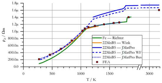 Specific electric resistance of 22MnB5, computed data.