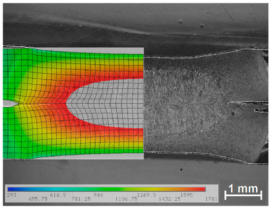 An overview of the computed temperature distribution in the welded sheets at the end of current flow, along with a macrosection of the weld nugget, is presented in Figure 14.