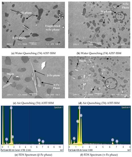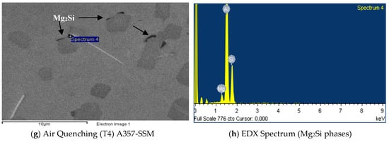 - The water quenching of A357 SSM indicated higher hardness values compared to direct Air quenching-aging alloys. The air quenching results in the formation of hardening Mg2Si phases out of Aluminum matrix-solid solution (as shown in SEM microstructures) resulting in a negative effect on the mechanical properties of Alloys investigated.