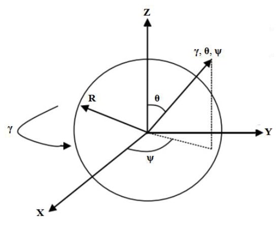 The spherical coordinate system is shown in Figure 8. The center of the sphere is regarded as the origin of coordinates. Consider a globular initial nucleus with a radius R0. The interface subject to time is given by: