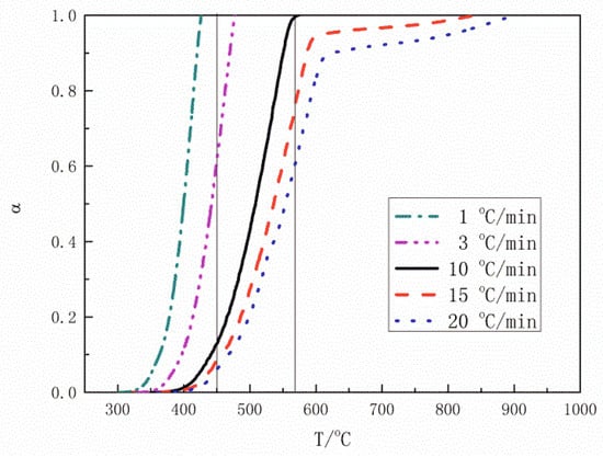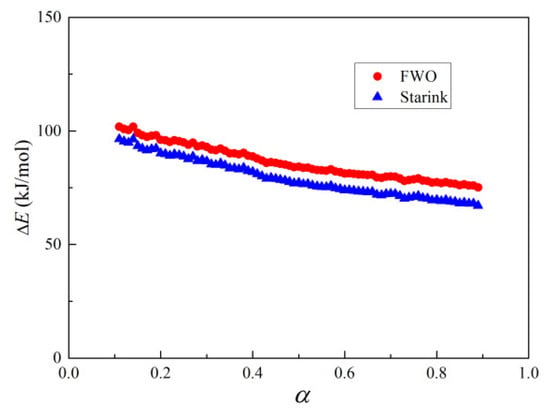 - Starink, M.J. The determination of activation energy from linear heating rate experiments: A comparison of the accuracy of isoconversion methods. Thermochim. Acta 2003, 404, 163–176. [Google Scholar] [CrossRef]