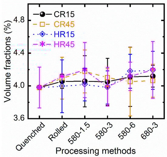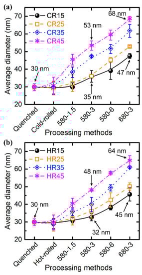 - The homogenization and growth of SPPs are attributed to the Ostwald ripening mechanism. Due to the invariable volume fractions of SPPs in quenched, rolled, and annealed samples, the growth rates of SPPs are primarily governed by the diffusion rates of the substance of SPPs in the Zr matrix. Since the effective diffusion coefficient consists of the lattice diffusion and short-circuit diffusion, the sample with a higher deformation degree is speculated to have more defects in the Zr matrix, which provides more shortcuts for the mass transfer of SPPs. As a result, SPPs in the sample with a higher deformation degree grow and homogenize more easily compared with those in the sample with a lower deformation degree.