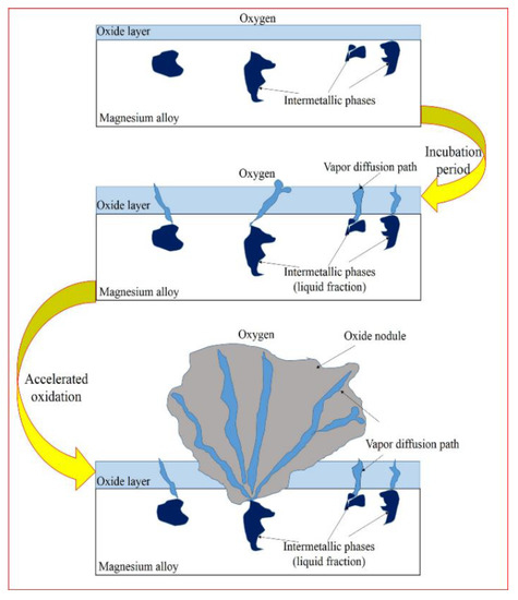 - Czerwinski, F. Factors affecting the oxidation nature of magnesium alloys. JOM 2004, 56, 29–31. [Google Scholar] [CrossRef]