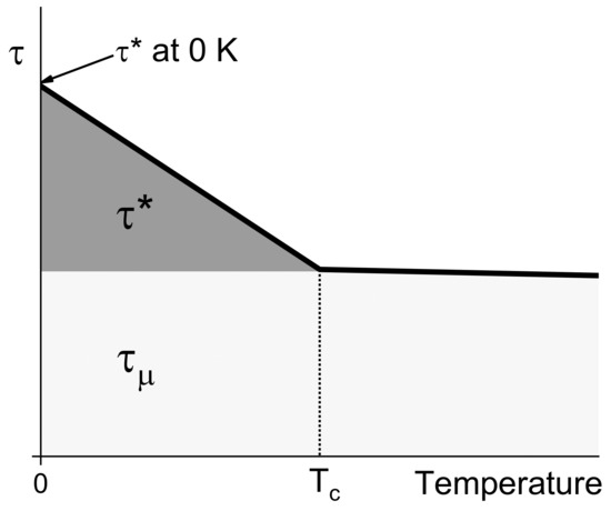As discussed in the introduction, the theory of dislocation splitting the stress in two distinct parts is used to define the thermoviscoplastic behavior of materials. The equivalent stress for body cubic-centered (bcc) material is defined as τ = τμ + τ* (with τμ corresponding to the athermal stress and τ* the thermal stress), assuming an additive contribution of each part. Each component corresponds to a barrier preventing the dislocation motion. Two main categories are distinguished: long-range and short-range obstacles. The stress required to overcome the long-range barrier is represented by the athermal stress τμ and considers the obstacles such as grain boundaries or other dislocations. Therefore, this stress is related to the dislocation density into the considered material. For bcc metals, τμ is weakly affected by the strain rate or the temperature. The other component called the thermal stress τ*, is representing the stress required to overcome the short-range obstacles. These obstacles correspond to the easiness for a dislocation to move from one site to the next, at an atomic level. At this scale, the motion of the dislocations requires to overcome the Peierls–Nabarro stress [23]. This stress corresponds to that required for the dislocation to move from one equilibrium position to the next. The energy required to overcome this barrier is temperature and strain rate dependent. On one hand, the temperature increase reduces the required energy by increasing the amplitude of atom vibrations which in turn facilitates the jump of individual atoms. On the other hand, higher strain rate induces a higher dislocation velocity and then a reduced time for the dislocations to move from one position to another. Therefore, the contribution of the thermal energy to overcome this barrier is weaker. These mechanisms are called thermally activated mechanisms. At T = 0 K, there is no contribution of the thermal energy, and the stress corresponding to the thermally activated mechanisms is maximum. This stress is called the mechanical threshold stress. This theoretical change of the equivalent flow stress with the temperature is represented in Figure 7 [26]. Below a critical temperature Tc, the flow stress corresponds to the addition of the thermal stress τ* and the athermal stress, τμ. For temperature higher than Tc, the thermal stress vanishes and the flow stress is equal to the athermal stress.