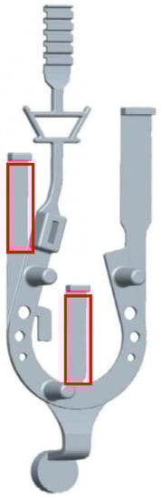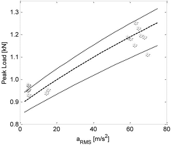 - The geometry of the die [4,5,11,16,17]. Badly designed dies impose optimal plunger motion to improve quality since their shapes boost the generation of defects. This includes both the geometry of the cavity, as well as the position and the design of the nozzle. Hence, a large variability of the casting strength is obtained as the plunger motion varies. In contrast, optimized dies make the casting quality less sensitive to process parameters and therefore smaller drifts of the properties are expected when modifying the acceleration. Hence, coefficient , representing the variability of the achieved peak load, is strongly affected by the geometry of the die. Indeed, the slope of the fitting model will be low in the case of optimized geometries [6], while it will be steeper in the case of “defect-generating” dies like those adopted in this work and in [12,18]. Also, the friction between the die and the flowing metal has a similar effect: in the presence of high friction forces, the flow is perturbed unless a proper selection of the plunger motion profile is chosen, thus exacerbating the defect generation with badly planned plunger motion.