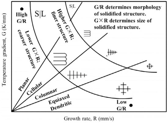 The effect of solidification parameters on the solidified microstructure, data from [].