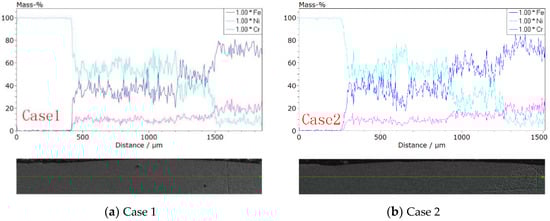 Element distribution under different heat input. (a) 80 J/mm, (b) 40 J/mm.