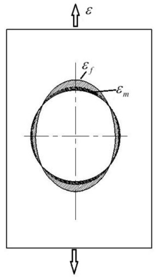 Similarly, the volume of the spherical martensite particle is equal to the volume of the ellipsoid after the tensile test. The following expression exists