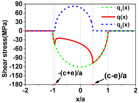 In the above formula, there is an eccentric displacement in the stick zones (the stick zone changes into stick zone 2) as shown in Figure 2. For the slip zone, the shear traction still follows the Coulomb friction model . Therefore, the shear stress is given by: