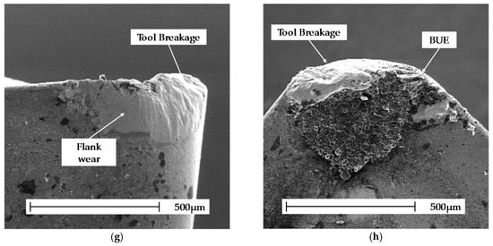 - The main wear modes identified during the experiments were: flank, chipping, built-up edge (BUE), and notch wear. In all of the cutting conditions, the end of tool life was reached due to the catastrophic failure of the cutting edge, which was mainly due to the coalescence of fragile breakages of the tool (chipping).