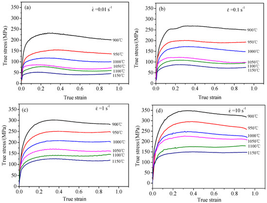 - In the initial stage of deformation, as the strain increases, the flow stress rapidly increases to a peak. After reaching the peak stress, the flow curve exhibits significant flow softening at low strain rates, mainly related to deformation heating and dynamic changes such as DRV and DRX. At high strain rates, flow softening is reduced by the higher work-hardening rate.