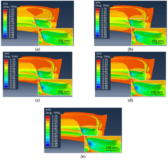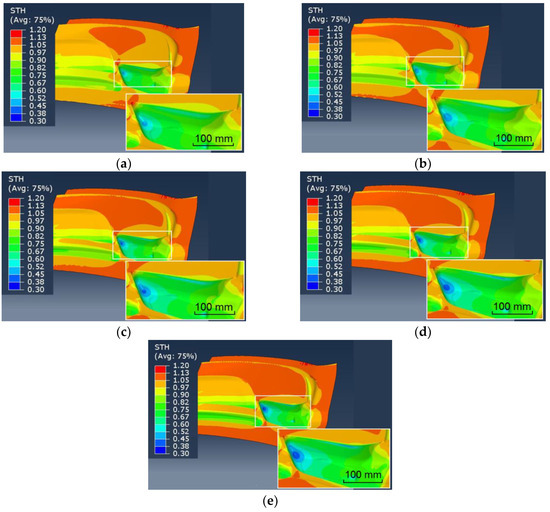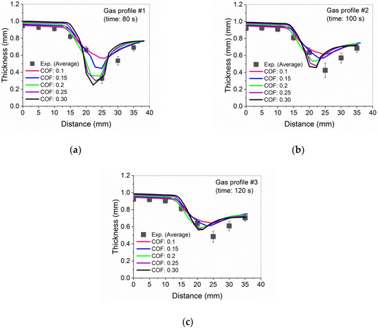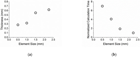 - It was shown that both the element size and friction coefficient had significant impacts on the predictions of the thinning. By reducing the element size, the thinning increases while the calculation cost also increases drastically. By increasing the friction coefficient, the amount of thinning was increased, significantly. The best agreement between the experimental observations and the FE simulation predictions was achieved when the friction coefficient was over 0.2.