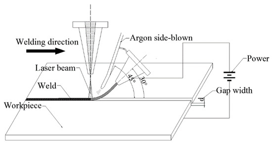 Laser hot-wire welding is a multi-heat source welding method combining a laser heat source and current heating welding wire [22]. The welding wire will be preheated by the current during the welding process, which can reduce the dependency of the welding wire on the laser heat source and enhance the utilization efficiency of the laser to melt the base metal. The preheating temperature of welding wire can be accurately controlled through adjusting the current, thus the feeding stability of the welding wire can be controlled and good welding quality can be obtained. Wen et al. [23] studied the transition behavior of welding wire in the laser hot-wire welding process. Different transition behaviors of welding wire were observed under different technological conditions through high-speed camera. At different preheating temperatures of welding wire, the welding wire had three transition modes: Dropping transition, fusing and broke transition and continuous transition. Good weld formation and a stable welding process could be obtained when the welding wire was in continuous transition mode. Ohnishi et al. [24] studied the high-power laser hot wire welding of high-strength steel plate. The results showed that the preheating of wire and sufficient laser power can produce a fully penetrated keyhole, which could effectively improve the gap tolerance and inhibit oxidation. Liu et al. [25] studied the laser hot-wire welding experimentally and numerically. The results showed that the hot wire not only reduced the laser energy consumption, but also the feeding stability of the welding wire was controlled and good welding quality was obtained. If the heating temperature of welding wire was too low, the welding wire needed to absorb more laser energy to melt; if the heating temperature of welding wire was too high, the welding wire would lose its rigidity and be difficult to be accurately fed into the molten pool; only when the welding wire was at appropriate preheating temperature, would the transition of welding wire could be continuous and stable, and good weld formation would be obtained [26,27].
