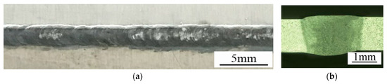 Weld surface and cross section morphology. (a) Weld surface; (b) Cross section.