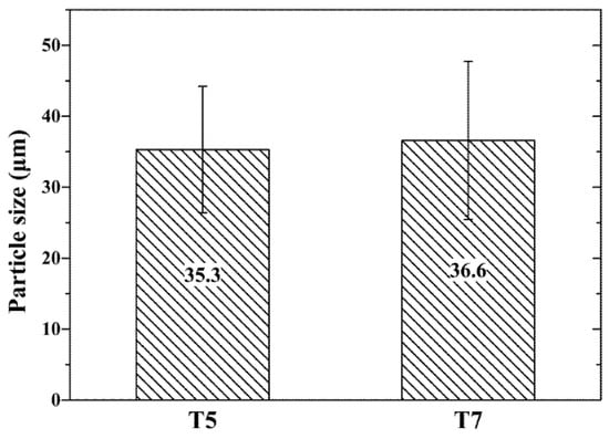 Average size of primary Si for 4 wt.% TiB2/Al-12Si composite at both T5 and T7 states.