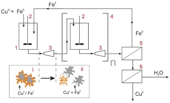 - Abdel-Aziz, M.H. Production of copper powder from wastewater containing CuSO4 and alcoholic additives in a modified stirred tank reactor by cementation. Hydrometallurgy 2011, 1091, 61–167. [Google Scholar] [CrossRef]