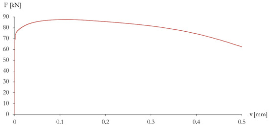 The experimental response of the tested beam under uniaxial compression loading (in displacement control) reveals that a global, flexural-torsional buckling event takes place before the occurrence of local buckling at the flange/web junctions. Generally, during the compression of thin-walled beams that are not reinforced by transverse braces and/or diaphragms, the flange, and/or the web buckle locally over short distances without overall lateral-torsional deflections of the beam. In the performed test, the specimen was strengthened with two diaphragms (Section 2.2.1), which induced concentrated longitudinal ‘bimoments’ in the cross-sections strengthened by such elements [1]. The concentrated bimoments are proportional to the relative warping of the beam in the sections of interest, and to the mechanical and geometrical properties of the stiffening plates. The diaphragms proved to affect the state of stress of the structure, partially preventing local warping, and significantly improving the resistance of the beam to local stability phenomena. A good agreement between the experimental buckling load ( kN) and the numerical predictions of such a quantity ( kN, kN]) is observed in the case of semi-rigid boundary conditions ( kN). It is worth remarking that the adopted numerical method produces upper bounds of the exact buckling load [28]. Such boundary conditions ostensibly better approximate the actual support conditions of the beam under examination, due to not-negligible friction forces at the interfaces between the terminal cylindrical hinges and the end cross-sections of the beam.