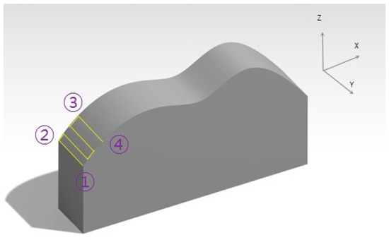 Schematic diagram of contour milling. (The sequence of tool paths are 1, 2, 3 and 4).