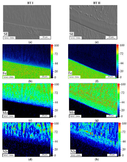 - Solecka, M.; Kopia, A.; Radziszewska, A.; Rutkowski, B. Microstructure, Microsegregation and Nanohardness of CMT Clad Layers of Ni-Base Alloy on 16Mo3 Steel. J. Alloys Compd. 2018, 751, 86–95. [Google Scholar] [CrossRef]