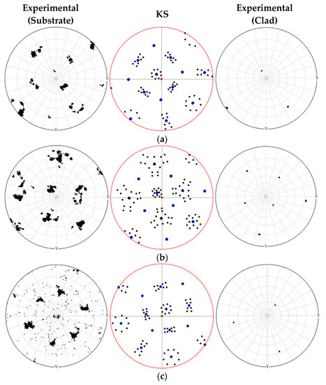 3.2. Crystallographic Relationship between the Substrate and the Clad