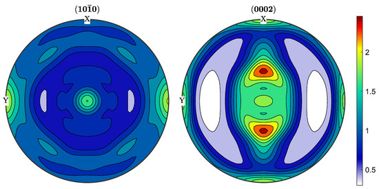 XRD pole figures of the as-received ZEK100-O sheet. X and Y axes refer to the transverse and rolling directions, respectively.