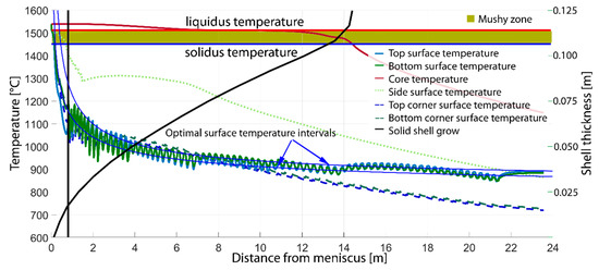 - Mosayebidorcheh, S.; Bandpy, M.G. Local and averaged-area analysis of steel slab heat transfer and phase. change in continuous casting process. Appl. Thermal Eng. 2017, 118, 724–733. [Google Scholar] [CrossRef]