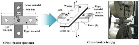 Currently, the multi-material design concept is widely used in practical applications. Specifically, structures designed with multi-materials utilize light-weight components, such as advanced high-strength steel, aluminum alloy, and carbon fiber reinforced plastic (CFRP), all of which are extensively used in automotive bodies [1,2,3]. The success of such multi-material designed structures greatly depends on the methods employed to join the body components made of dissimilar materials. In this regard, there are several methods suitable for joining lightweight materials, such as adhesive bonding, friction stir welding, mechanical fastening, self-piercing rivets, and mechanical clinching [4,5,6,7,8,9].