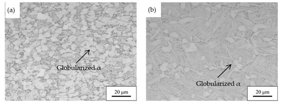 - Poorganji, B.; Yamaguchi, M.; Itsumi, Y.; Matsumoto, K.; Tanaka, T.; Asa, Y.; Miyamoto, G.; Furuhara, T. Microstructure evolution during deformation of a near-α titanium alloy with different initial structures in the two-phase region. Scripta Mater. 2009, 61, 419–422. [Google Scholar] [CrossRef]