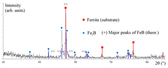 - Kulka, M.; Makuch, N.; Piasecki, A. Nanomechanical characterization and fracture toughness of FeB and Fe2B iron borides produced by gas boriding of Armco iron. Surf. Coat. Technol. 2017, 325, 515–532. [Google Scholar] [CrossRef]